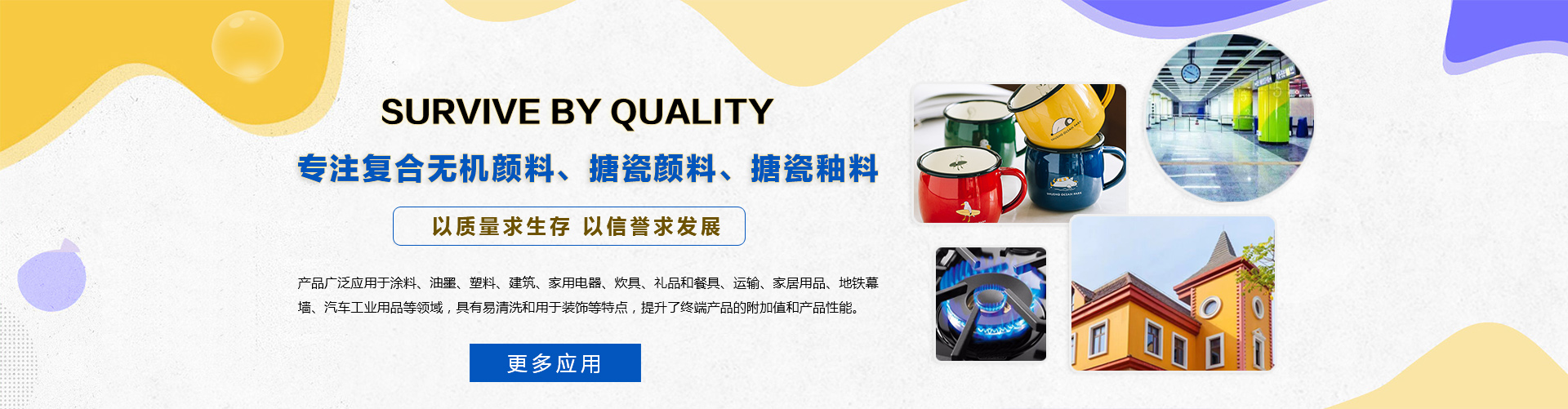本公司生產(chǎn)的搪瓷釉料,廣泛應(yīng)用于日用搪瓷、熱水器內(nèi)膽、標(biāo)牌、墻面裝飾板、爐面板、衛(wèi)浴、飲具等領(lǐng)域......>>更多